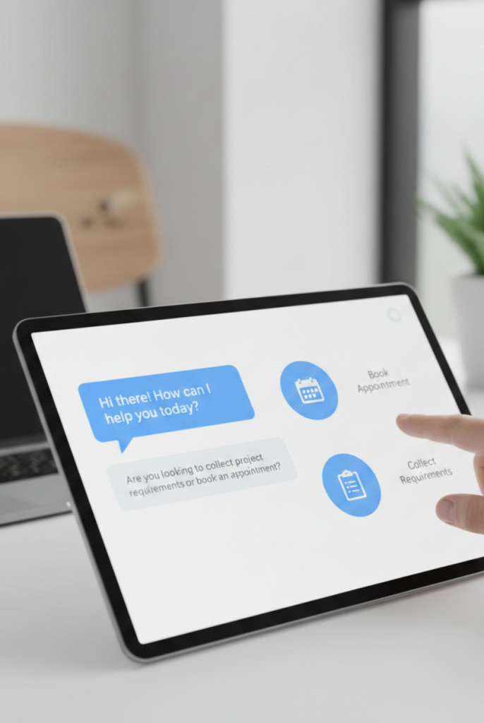 Chatbot collects requirements or books appointment.